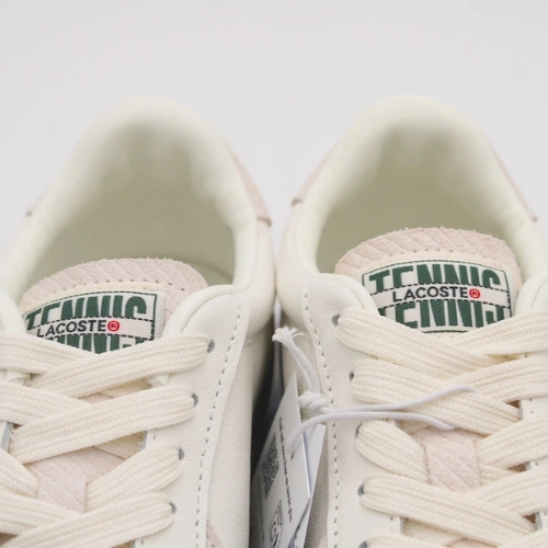 Tenis Lacoste con detalles en puntera y talón, suela de goma y logotipo bordado.